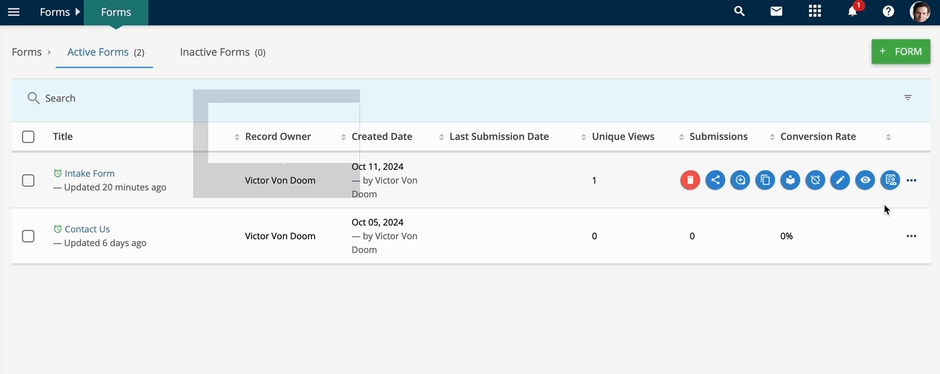 - Select the form you wish to edit and click on it to open in Edit Mode.