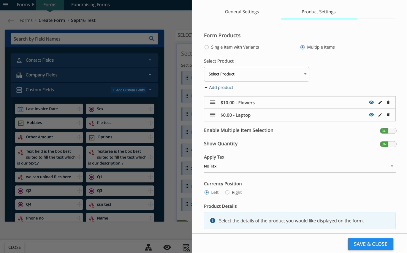 - After setting the products as private, ensure to click on Save & Close. This action finalizes the changes, making these products visible only to logged-in users accessing the form through the Internal Form link.