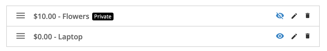 - For each product you want to make private, look for the icon that indicates privacy settings.