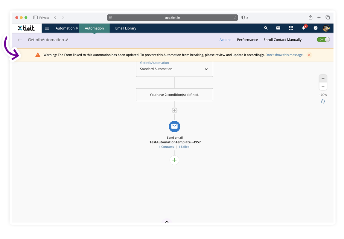 ⚠️ Warning: The Form linked to this Automation has been updated. To prevent this Automation from breaking, please review and update it accordingly.
